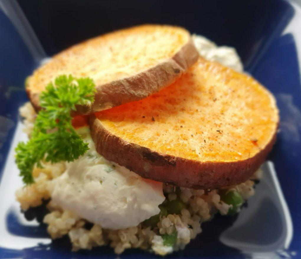 Lägg bataten på plåt i ugnen på 200 grader i ca 20min
