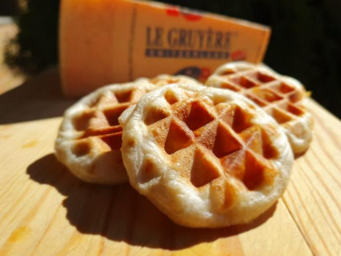 Värm våffeljärnet och sätt in bollarna och låt de grädda några minuter