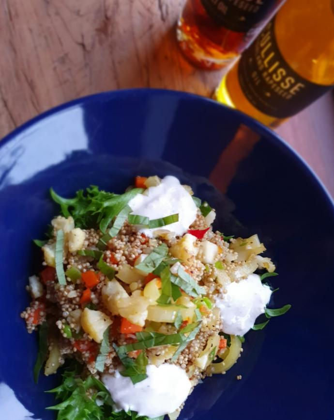 Vi hade quinoa, som vi kokade upp och blandade ihop de som en risotto